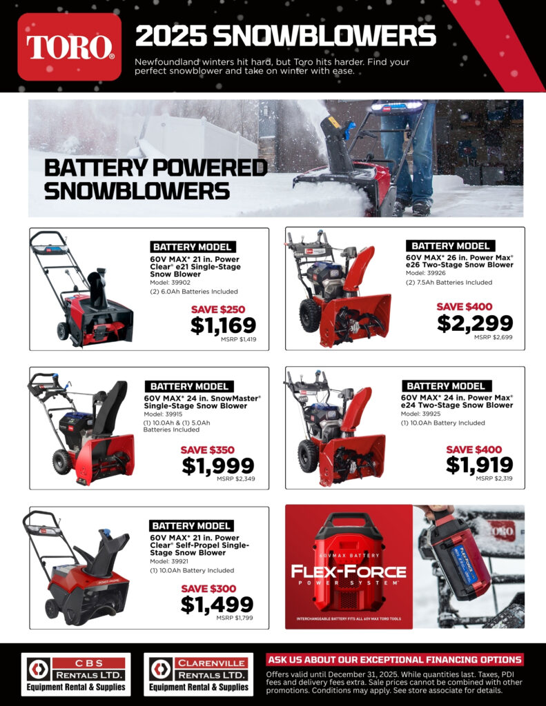 Tough enough to tackle Newfoundland’s hardest winters, Toro snowblowers are known for their power and durability. Whether you are looking for a reliable snowblower to clear out your driveway or a solution for easy commercial snow clearing, we have a snowblower in-stock to suit your needs.